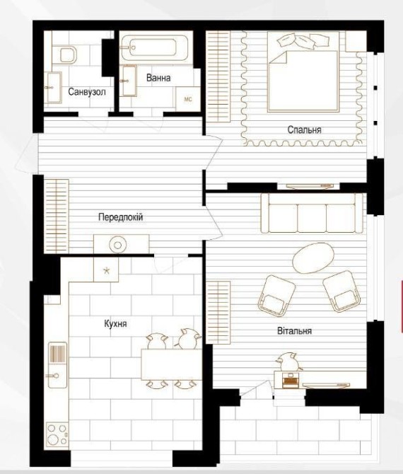 -Просторий передпокій - 12 м2