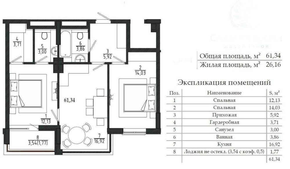 Квартира 61 метров, очень светлая за счет больших окон. Толстые стены, никакой слышимости.
