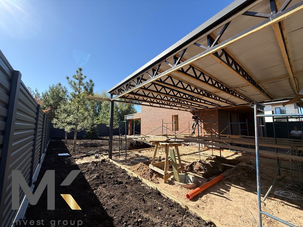 Зроблений автонавіс під два авто + в процесі ландшафтний дизайн.