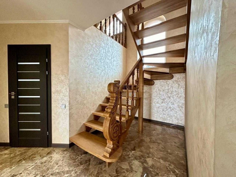 На другий поверх Ви підніметеся шикарними різьбленими дерев'яними сходами з масиву! Вгорі Вас чекають три спальні кімнати.