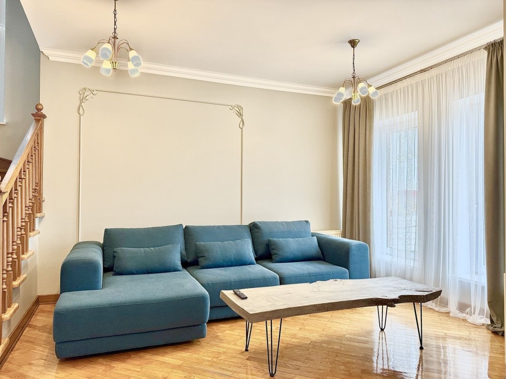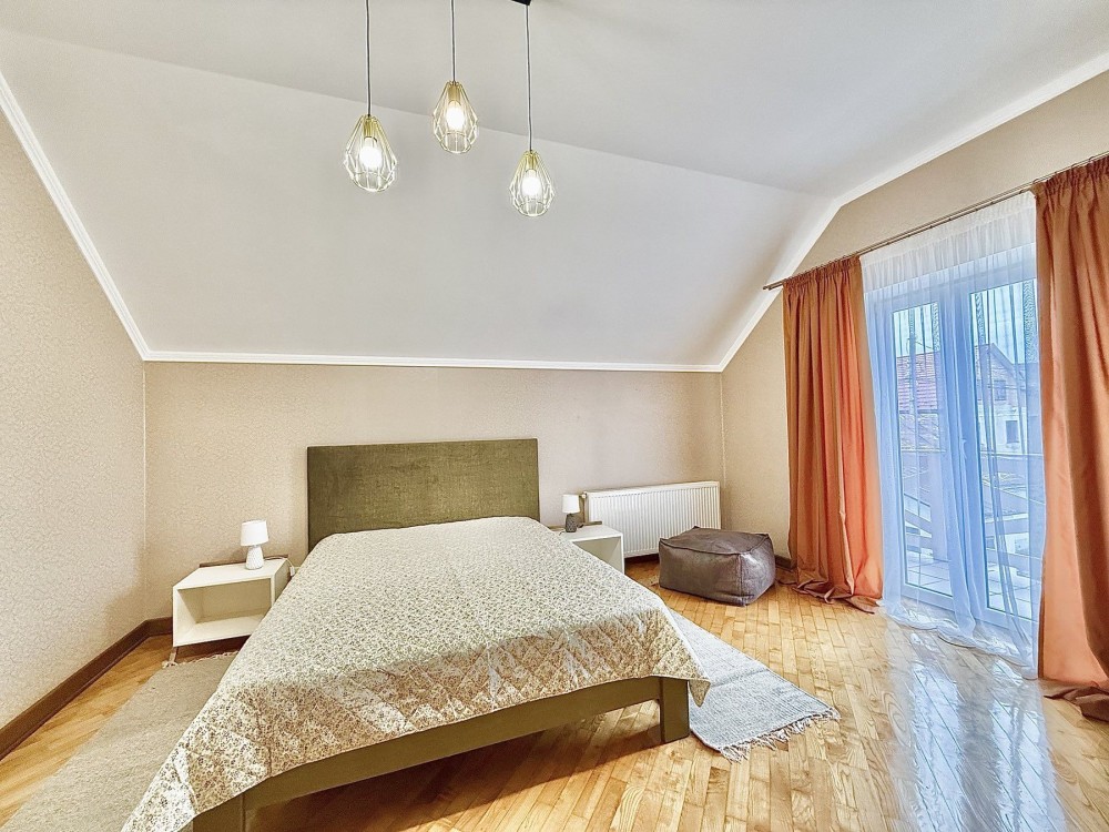 Оренда дуже комфортного котеджу з каміном, цегла, індивідуальне опалення, 2 балкони, вітальня, дитяча і спальня, кондиціонер, камін опалює весь котедж, тепла підлога в кухні, коридорах і санвузлах, міська централізована каналізація, водопровід центральний, три санвузла.