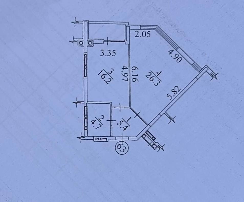 Встановлений газовий котел, зроблена стяжка підлоги, є великий балкон.