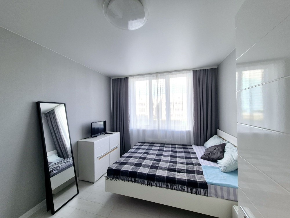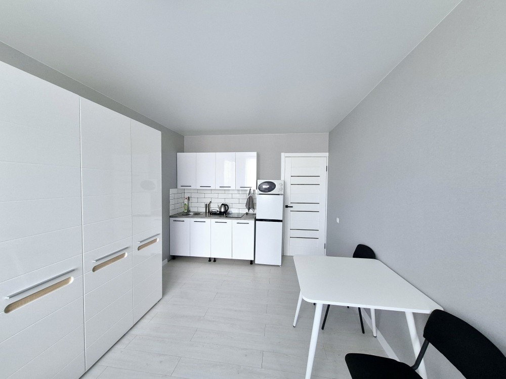 Світла, стильна та комфортна квартира для 1-2 людини. Укомплектована: просторе двоспальне ліжко, шафи,телевізор,роутер з безперебійним живленням (є інтернет при відключеннях світла), комод,кухонний стіл та стільці, вбудована кухня, холодильник, чайник, мікрохвильова піч, варильна поверхня,посуд, ванна, пральна машина, бойлер на 50л, та прихожа.