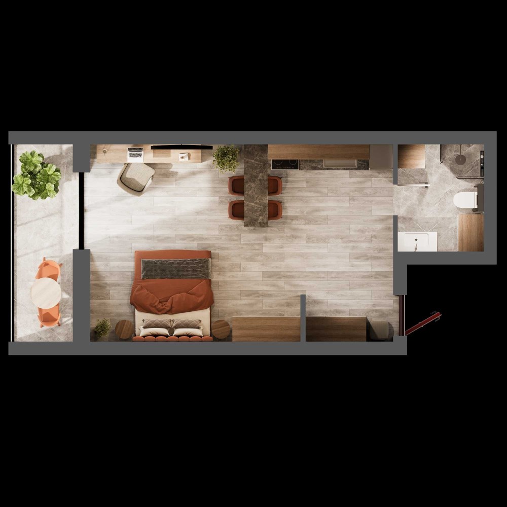 • Зручний простір для спальні та кухонної зони.