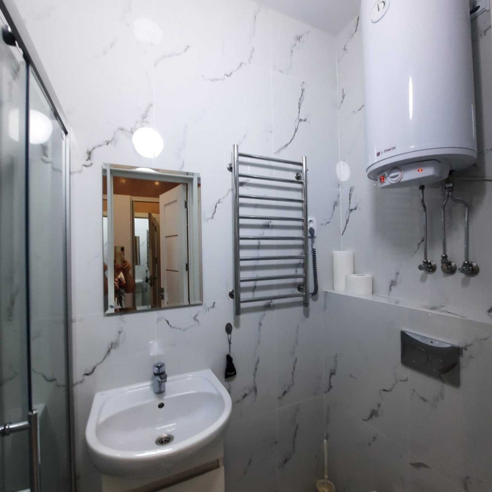 Тепла підлога, кондиціонер, холодильник, бойлер, натяжна стеля, сушилка для білизни, ліжко двохспальне, шкаф для одягу, витяжка, душова кабіна, телевізор, кухня, фільтри на воду. Все, як на фото, залишається . Ремонт робила якісний.