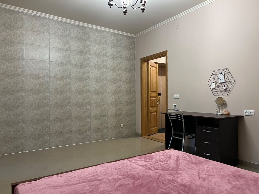 В квартире современный ремонт и все необходимое для комфортного проживания. Квартира состоит из двух отдельных комнат и кухни-студии. Спальни оборудованы кроватями с ортопедическими матрасами для комфортного сна. На кухне установлен бойлер для горячей воды и стиральная машина, микроволновка и электродуховка. Квартира уютная и теплая – поскольку все стены и пол утеплены. Хорошее отопление, дополнительно установлен теплый пол в одной из спален и балконе.