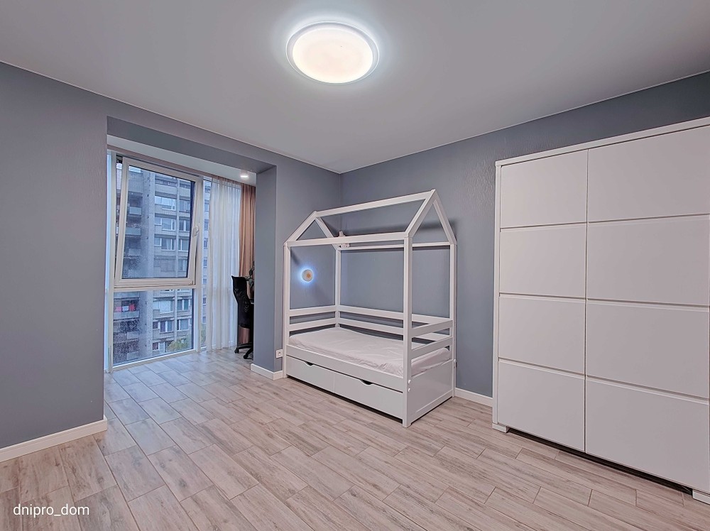 + Знаходиться на 9 поверсі 12 поверхового будинку. Бічний огляд з вікна на р.Дніпро.