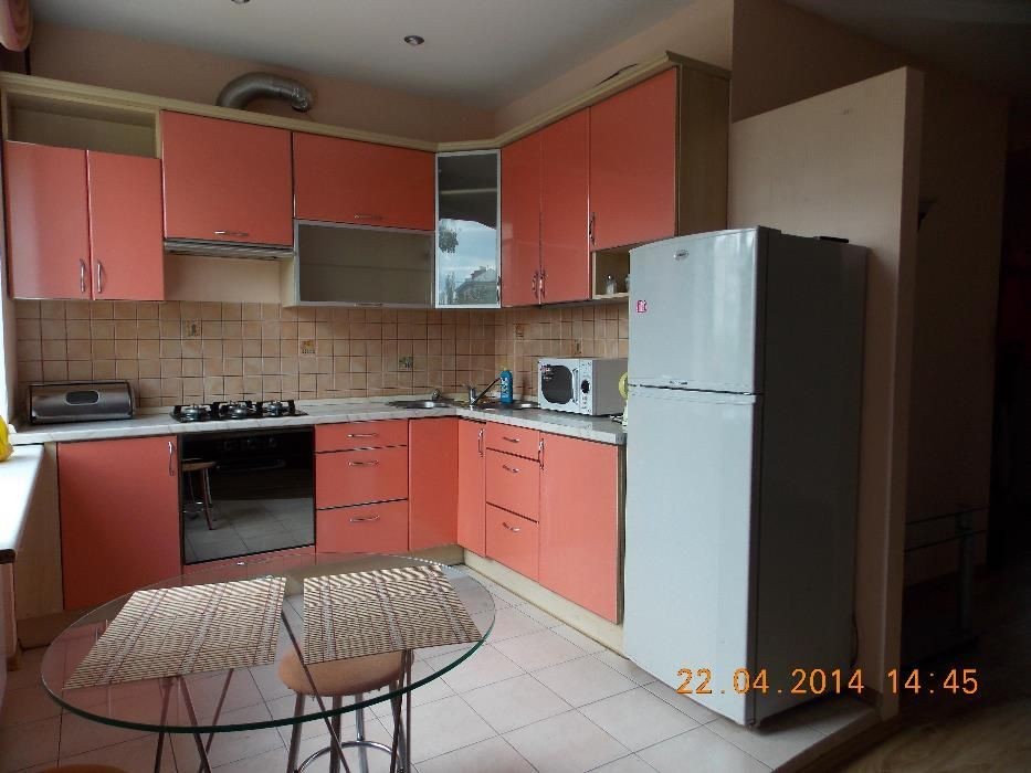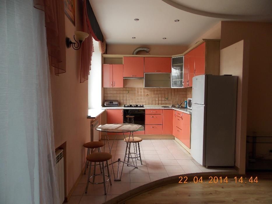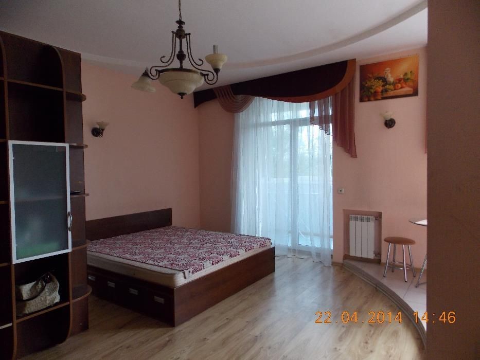 «сталінка», високі стелі, кухня-студія+спальня, 2 двуспальні ліжка, вбудована кухня, кутова ванна, пральна машинка, кондиціонер тощо