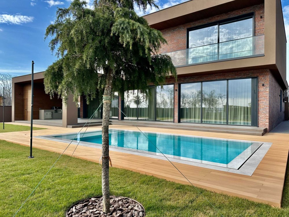 Эксклюзивный дом в элитном закрытом поселке «Сосновый берег». Архитектурный проект, выполненный в минималистичном стиле с использованием натуральных материалов и инновационных технологий.