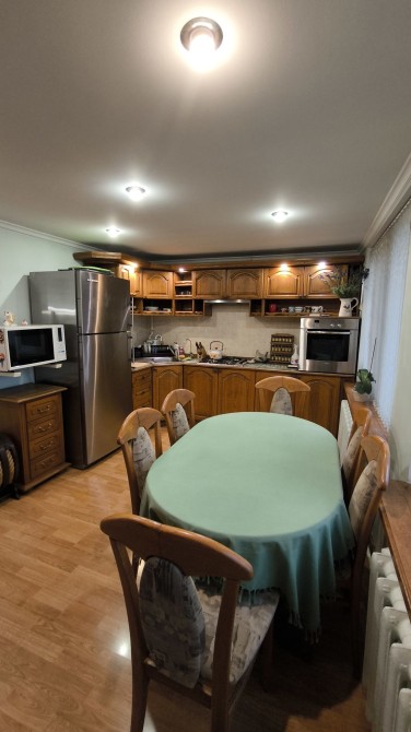 Большая кухня 12 метров, оборудована необходимой техникой и может вместить за столом всю семью.