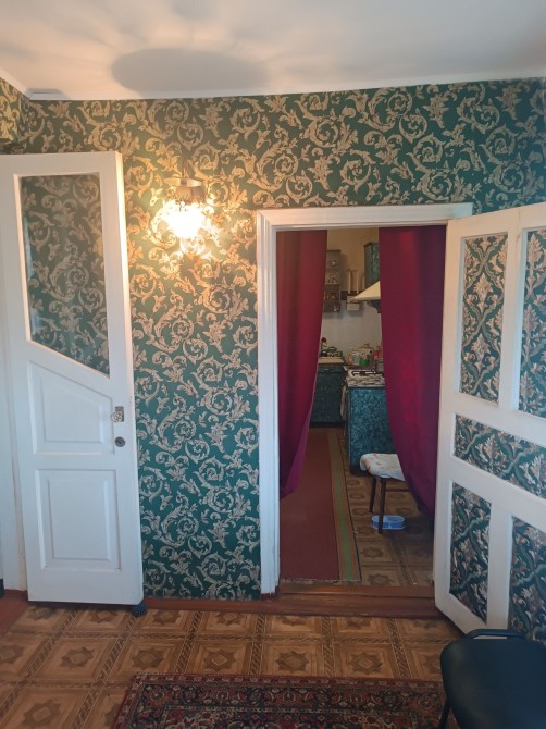 Красивый ремонт,дорогие обои,потолок лепнина,пол ДВП.