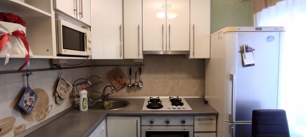 - "упакована" необходимой бытовой техникой: кондиционер, бойлер, стиральная машинка, холодильник, микроволновка, газовая панель, духовой шкаф, вытяжка;