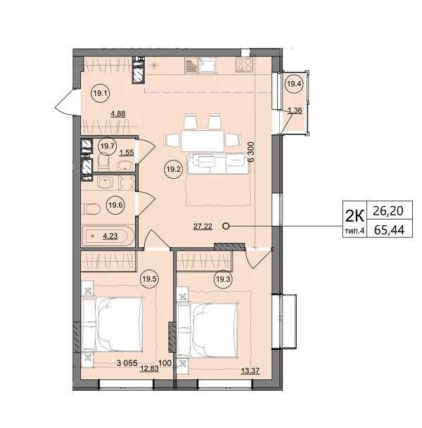 • Загальна площа 65.5 м2