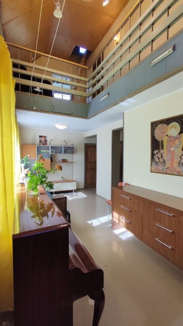 1 поверх- велика вітальня з високою стелею, санвузол, кухня.