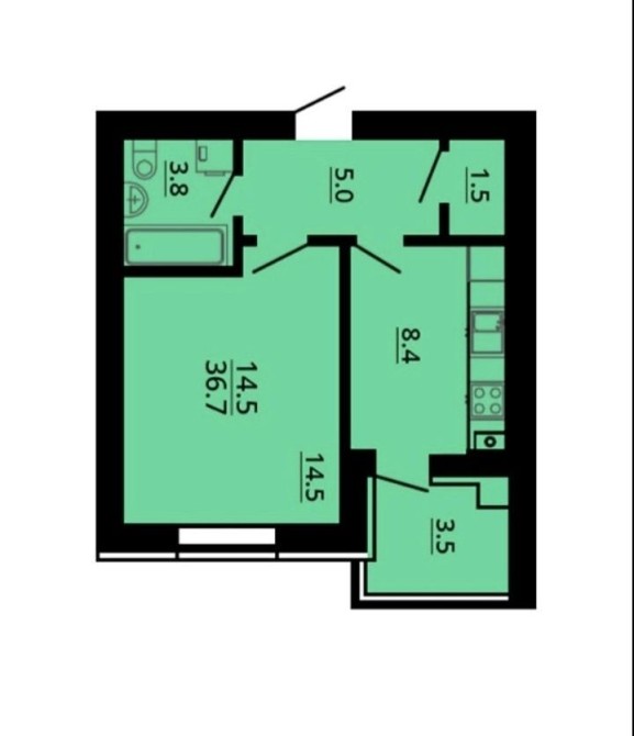 • Площа кухні 14 м2