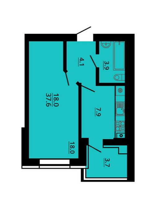 • Загальна площа 38 м2