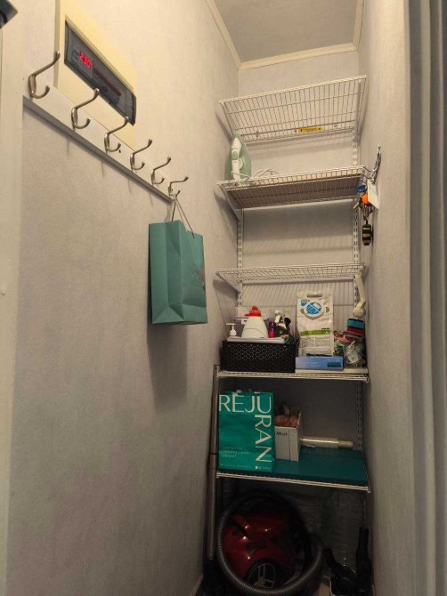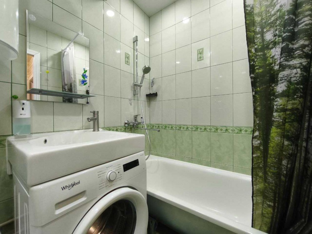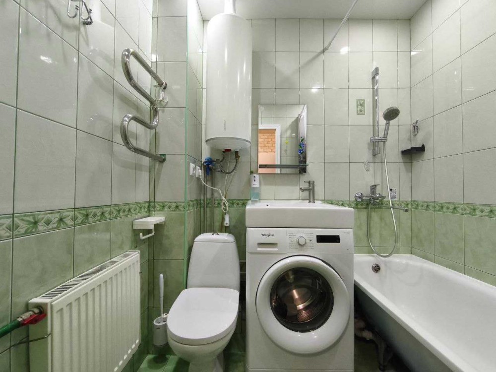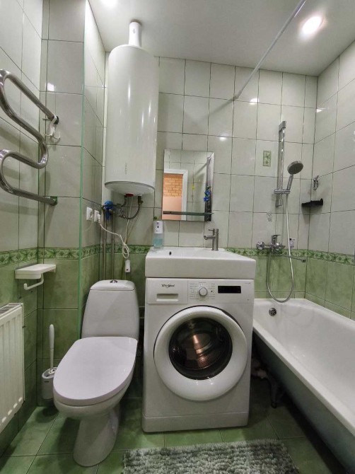 Суміжний санвузол обладнаний ванною, пральною машиною та бойлером.