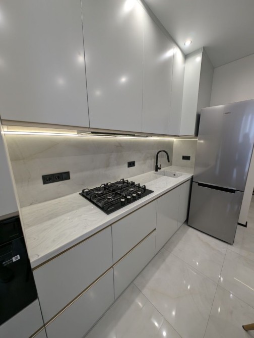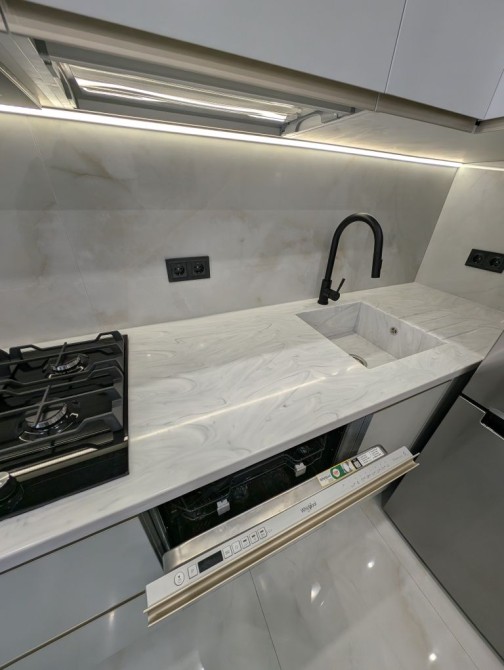 Кухня обладнана сучасною технікою мікрохвильовкою, духовкою, посудомийною машиною, варильною поверхнею .
