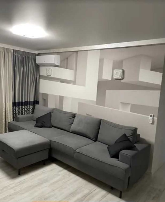 Вітальня — простора й затишна: великий розкладний диван, пуф, кондиціонер із функцією охолодження та обігріву з можливістю керування зі смартфона, телевізор LG із підтримкою Smart TV. В інших кімнатах — м’які розкладні дивани, що легко трансформують простір під ваші потреби.