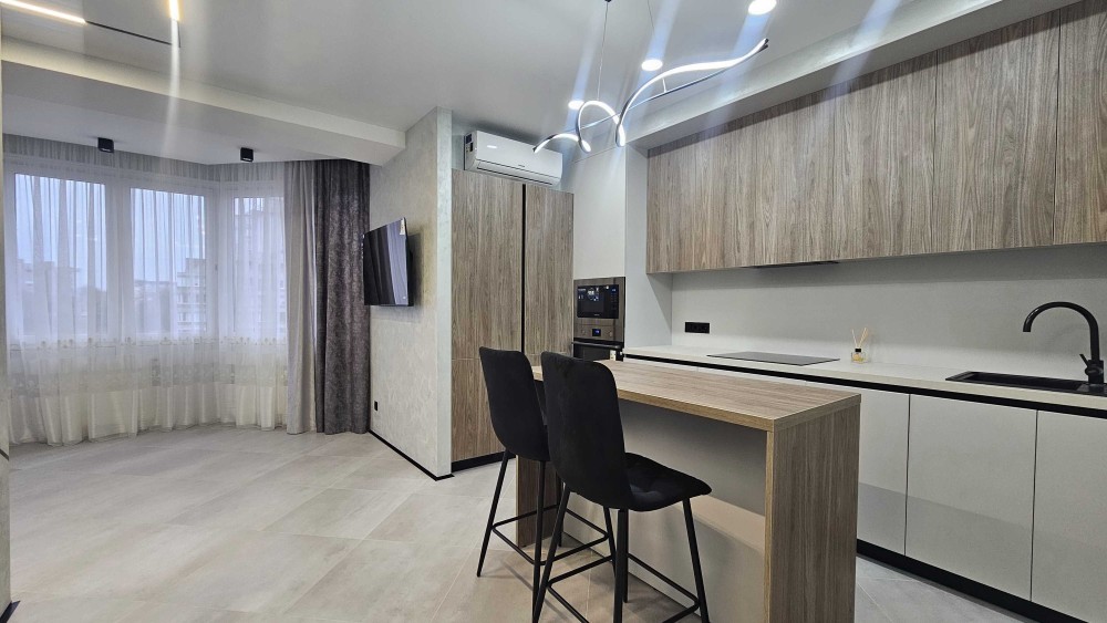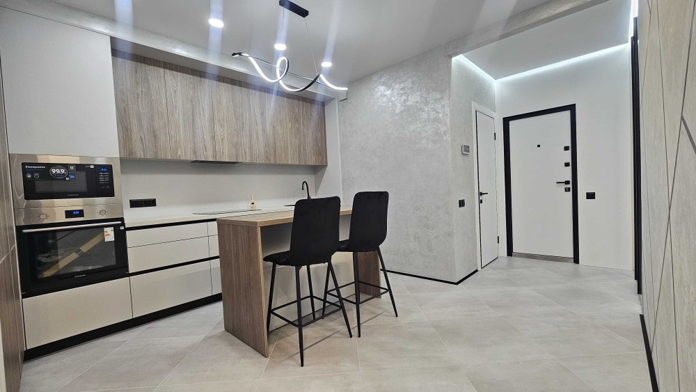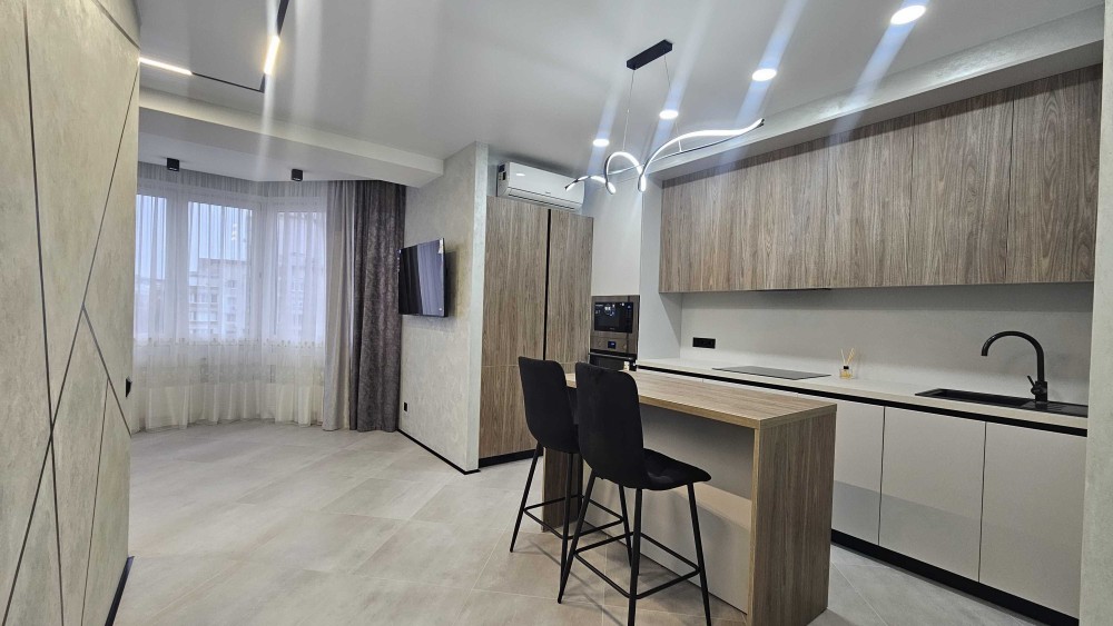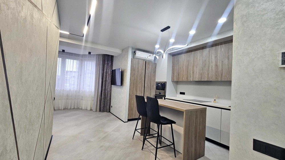 Стильна квартира з сучасним ремонтом у нових тенденціях дизайну: спокійні відтінки, продумане зонування, якісні матеріали та модні акценти в освітленні й декорі. Інтер’єр виконаний у лаконічному стилі, що поєднує комфорт, функціональність і естетику — заїжджай та живи без додаткових вкладень.