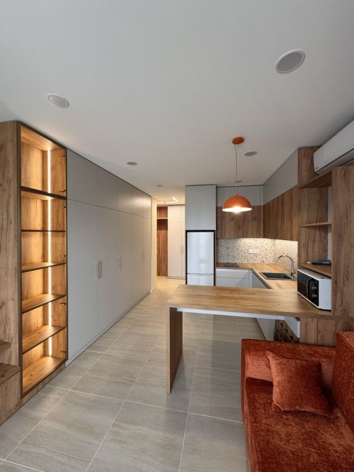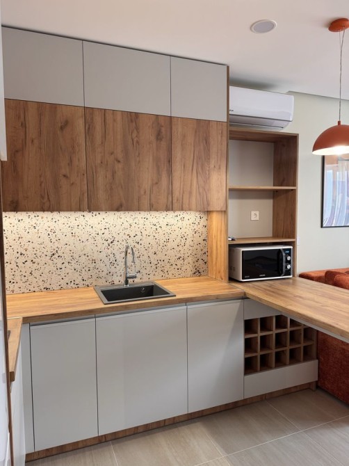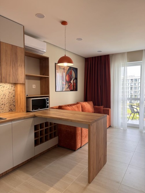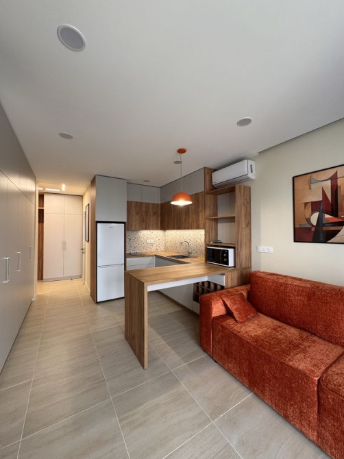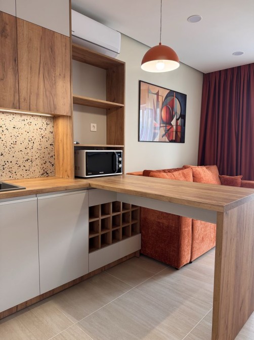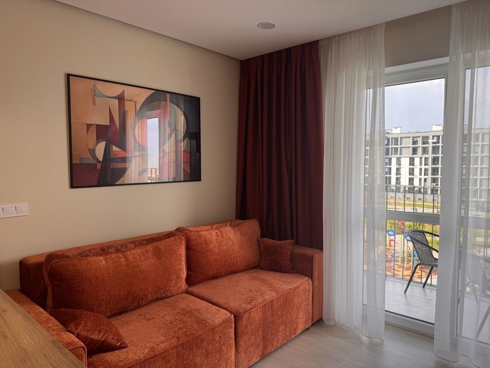 Оренда стильної 1 к кв з кухнею студією в новому будинку ЖК "Файна Таун" в Шевченківському районі, вул. Салютна, 2 Квартира 43 м2 , розташована на четвертому поверсі та складається з передпокою, спальні, великої кухні -студії та санвузла. Вікна квартири виходять в двір. Облаштована всіма необхідними меблями з екологічно чистої деревини та оснащена побутовою технікою: телевізор Samsung Smart 43, кондиціонери в кухні та кімнаті, плита індукційна, вбудований холодильник, духова шафа з функцією мікрохвильової печі, пральна машина з сушаркою. В кухні та ванній кімнаті тепла підлога, високошвидкісний інтернет. ЖК "Файна Таун" це: закрита територія з входом по картці, цілодобова охорона, відеоспостереження, паркінг, підземні контейнери для сміття, зарядні станції для електромобілів та лавки з інтегрованими батареями для підзарядки девайсів, розумне освітлення, яке підлаштовується під час доби та ще багато чого для того, щоб жити з комфортом й ні в чому себе не обмежувати) розповім при перегляді. Зручне транспортне сполучення та розвинута інфраструктура: магазини,спортивні та пішохідні зони ,зона барбекю, ресторани та кафе. Квартира, в якій поєднані комфорт та затишок, шукає своїх порядних орендарів молоду пару або одну людину без дітей та тварин. Перша оренда, квартира вільна.