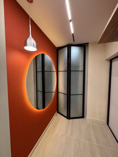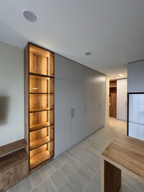 Все гармонійно та практично продумано, оскільки є окрема гардеробна та шафи у квартирі.