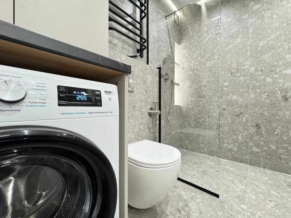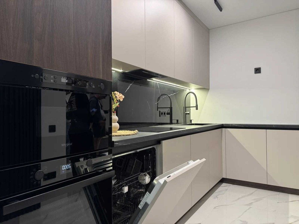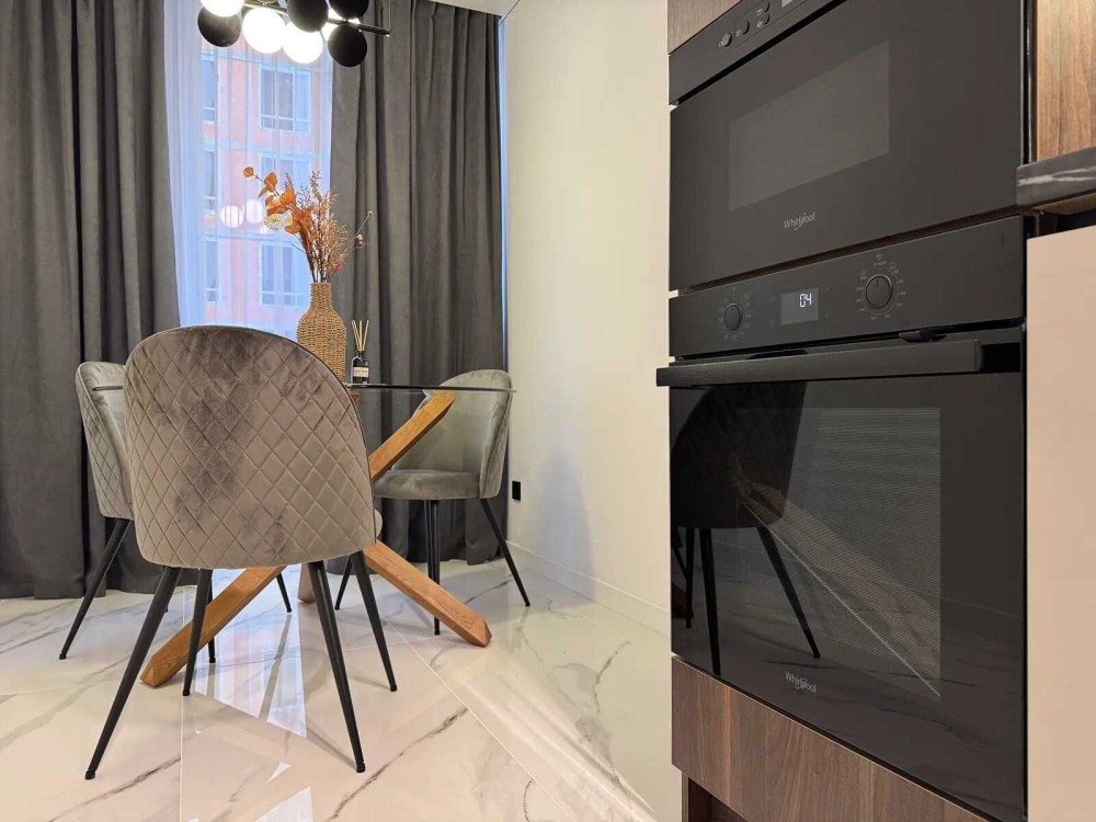 - Кухня обладнана вмонтованими меблями та всією необхідною технікою.