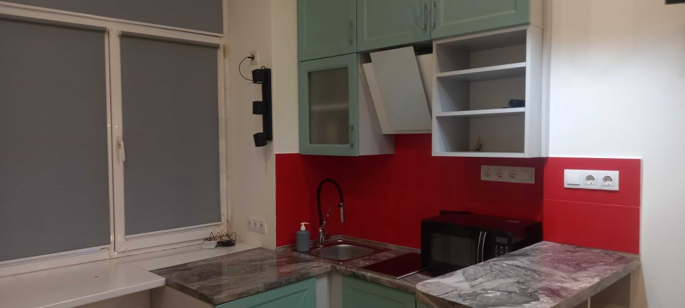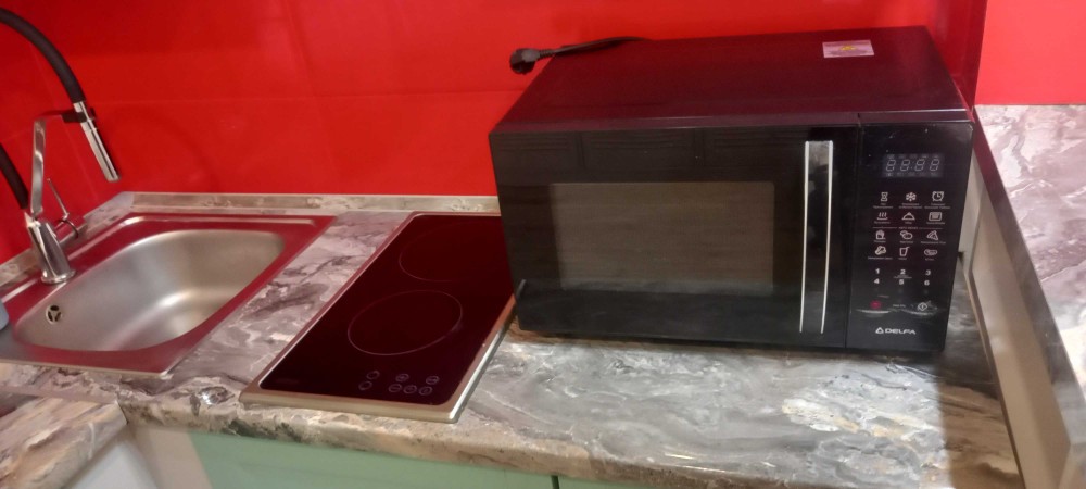 Квартира обладнана всіма необхідними меблями та побутовою технікою(холодильник, індукційна електроплита, витяжка, мікрохвильова піч). Є також кондиціонер, пральна машина з функцією сушки, телевізор.