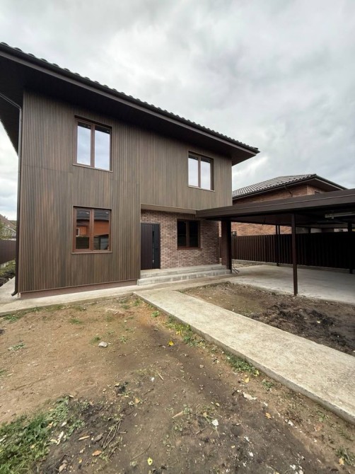 Пропонується до продажу новий будинок з сучасним фасадом, автонавісом та центральною каналізацією. Ідеальне розташування — всього 5 хвилин до столиці.