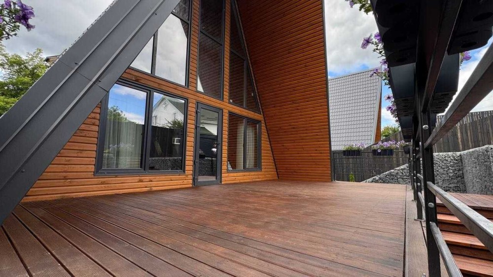 Пропонується видовий еко-дім площею 130 м², збудований за індивідуальним проєктом на ділянці 3,86 сотих у новому масиві з розвиненою інфраструктурою (торговий комплекс, аптека, продуктовий магазин, піцерія, дитячий майданчик, паркова зона).