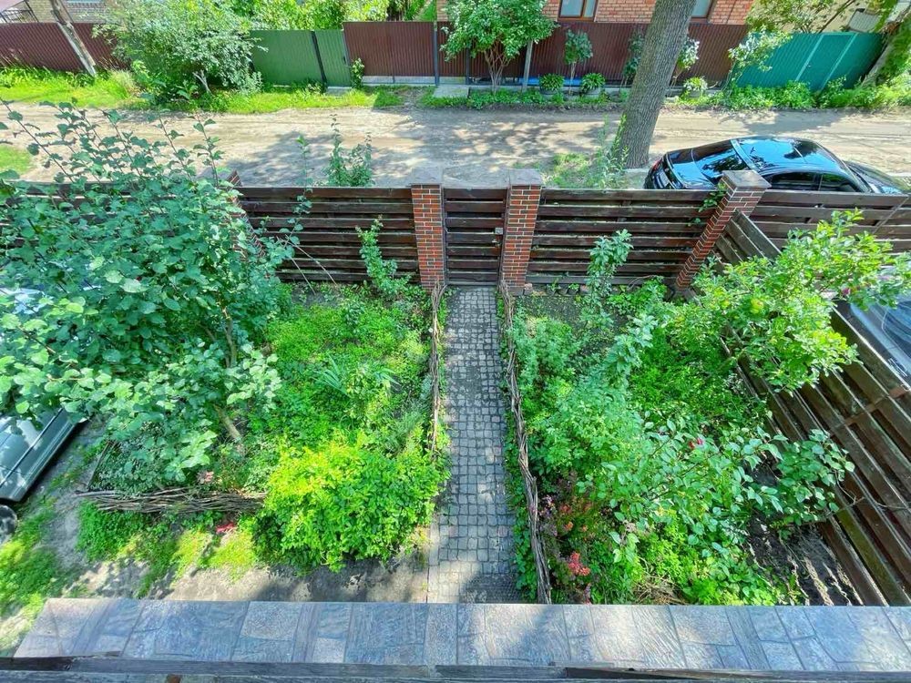 Огороджена територія, зелений двір, доріжки, ідеальне місце для відпочинку, барбекю чи сімейних вечорів.