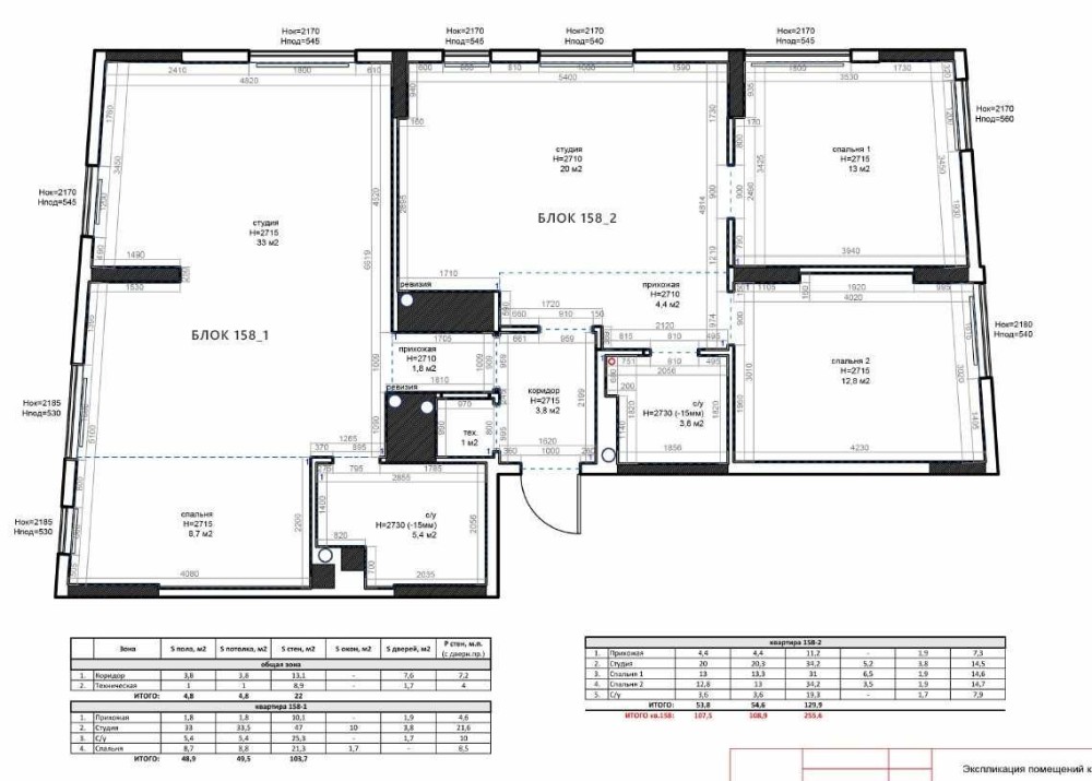 107,5 метрів, поділена на 1-к та 2-к квартири