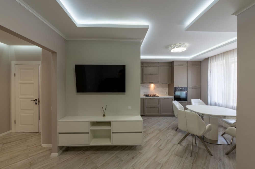 Вся необхідна техніка: телевізор, пральна машинка, посудомийна машинка, холодильник,