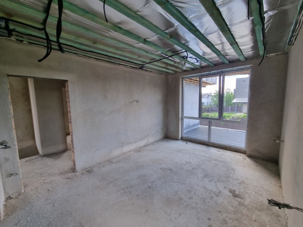 1 поверх - кухня вітальня з виходом на терасу, передпокій з місцем під шафу, кімната, сан вузол, котельня.