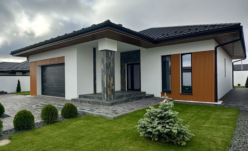 Сучасний проєкт без коридорів, три спальні кімнати, два санвузли, гардероб, котельня, гараж на 2 авто, велика кухня-студія, нарнія!