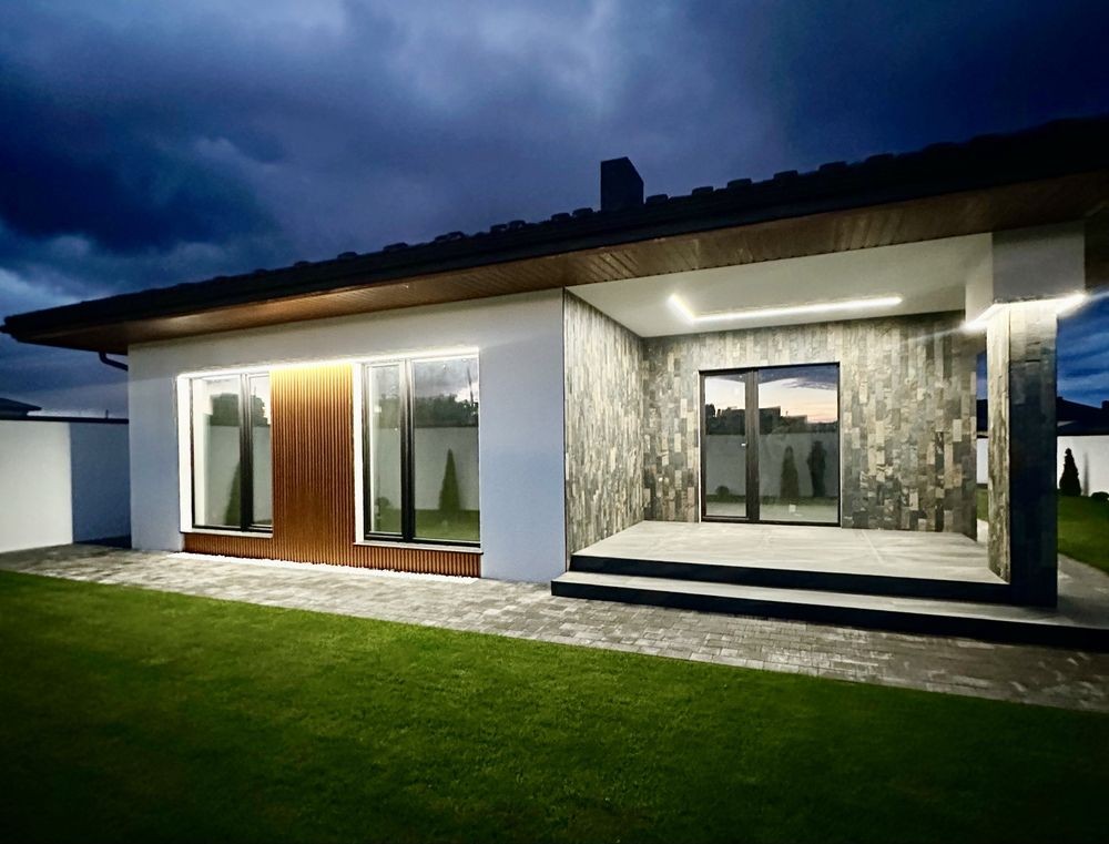 Сучасний проєкт без коридорів, три спальні кімнати, два санвузли, гардероб, котельня, гараж на 2 авто, велика кухня-студія, нарнія!