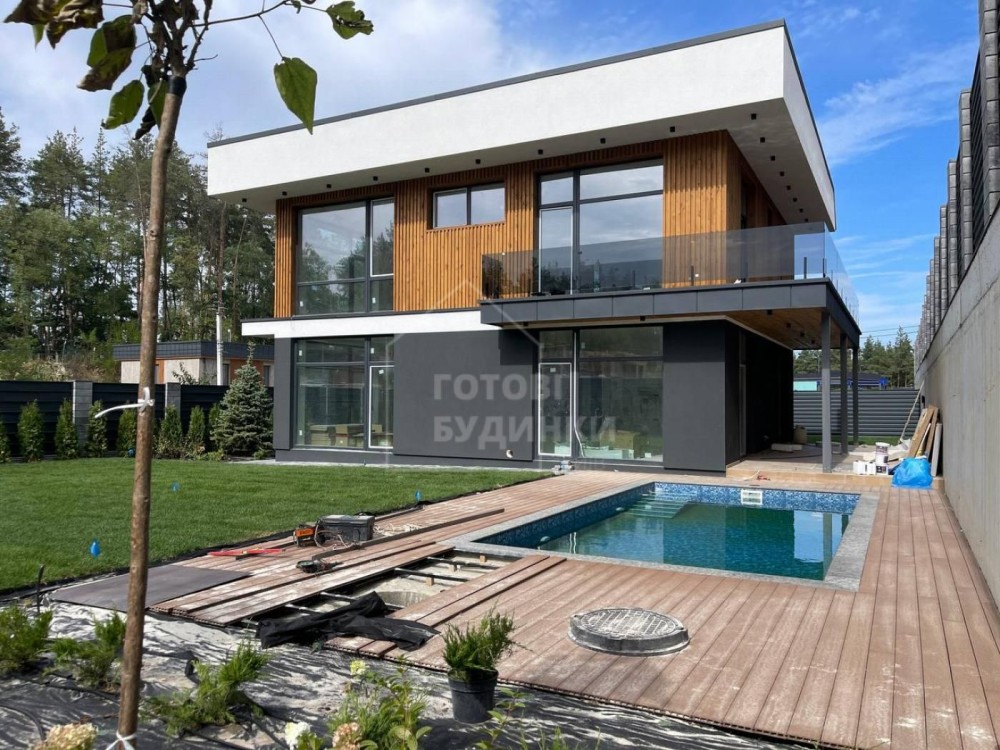 Пропонується новий двоповерховий будинок у сучасному стилі Хай-Тек площею 232 м², розташований у престижному котеджному містечку "Нова Ходосівка". Зручний і функціональний будинок, що поєднує сучасні технології будівництва, стильний дизайн та продумане планування для комфортного життя всієї родини. Чудова тераса і басейн створюють ідеальне місце для відпочинку та проведення часу з родиною та друзями на свіжому повітрі. В будинку тривають ремонтні роботиОсновні характеристики:Локація: КМ Нова Ходосівка;Площа загальна: 232 кв.м;Площа житлова: 200 кв.м;Ділянка: 8 соток;Паркінг на 3 авто.Планування включає:4 Спальні;3 Санвузли; 3 Гардероби;Кабінет;Котельня;Кухня-вітальня з виходом на криту терасу;Інженерні комунікації:Електрика: 16 кВт, 3 фази;Водопостачання: власна свердловина;Каналізація: індивідуальний септик з дренажною системою водовідведення;Ділянка та благоустрій:На ділянці планується рулонний газон, система автоматичного поливу, декоративні рослини, відмостка території, автоматичні ворота, паркан, басеїн, зона BBQ.Інфраструктура: ТРЦ МегаМаркет, аутлет Мануфактура, школа, ліцей, дитячий садок, супермаркети, кафе, ліс, парк, фітнес-центр, кінний клуб та інше;Оплата та оформлення:Прямий продаж від забудовникаБез комісіїЗв'яжіться з нашим менеджером для перегляду та уточнень.