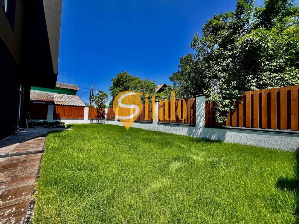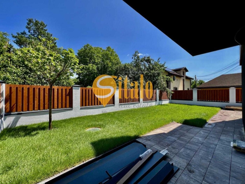 Ділянка огороджена, засіяно газоном, паркомісце для двох-трьох машин. Асфальтований заїзд.