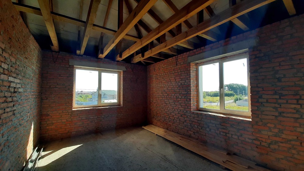 Побудований з червоної цегли -товщина стін 60 см.зякі зовні утеплені пінополістіролом (20 см), щільністю 35 що значно економить ваші витрати взимку і збереже прохолоду влітку.