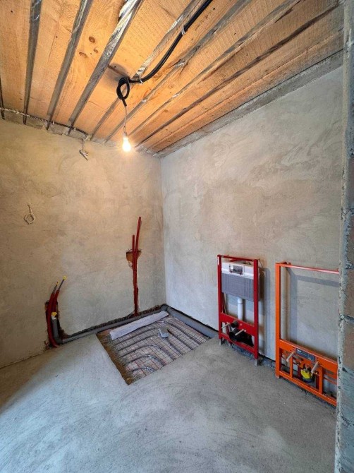 На першому поверсі простора кухня-студія-вітальня з місцем під двосторонній камін, великий хол, санвузол з душовою, окрема котельня. По всьому першому поверху зроблені теплі підлоги, повністю розведене опалення, електрика, зібраний електрощит.