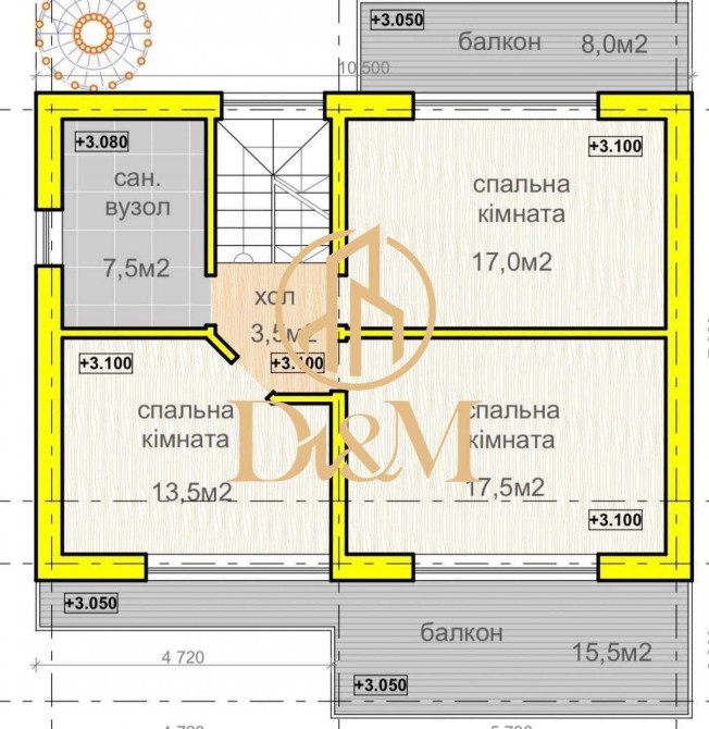 - 3 поверх: 3 спальні, санвузол