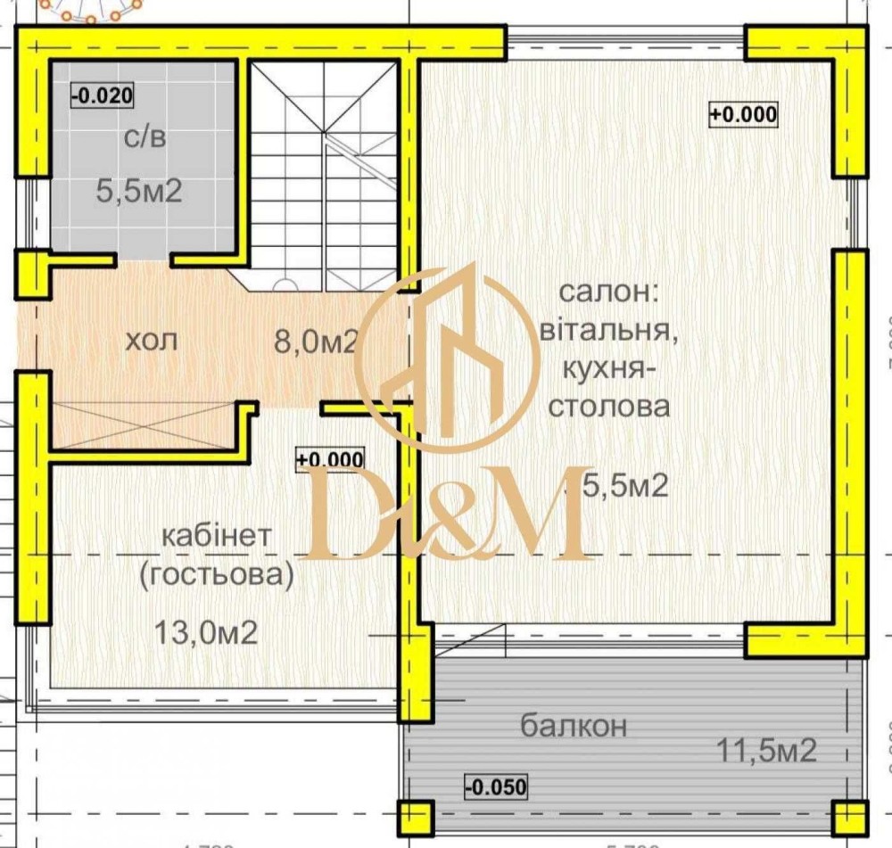 - 2 поверх: кухня, вітальня, санвузол