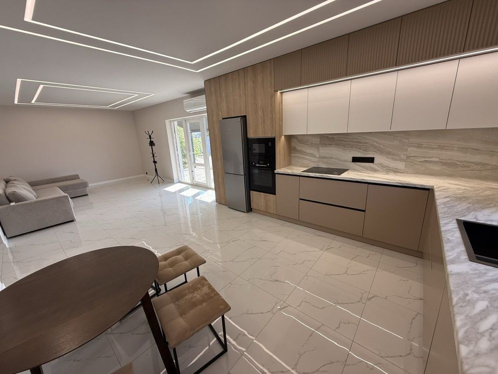 Повністю завершений ремонт у кожній кімнаті, гардеробна, вмонтована кухня біля вікна, усе зроблено якісно та за дизайнерським проєктом.