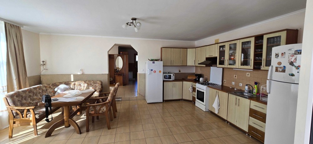 Частина будинку, яка готова до проживання складається: 1 поверх - простора кухня студія, ванна кімната, санвузол, коридор, кладова, вхід в підвальне приміщення, котельня має окремий вхід з двору, сходова; 2 поверх - дві спальні кімнати, ванна кімната.