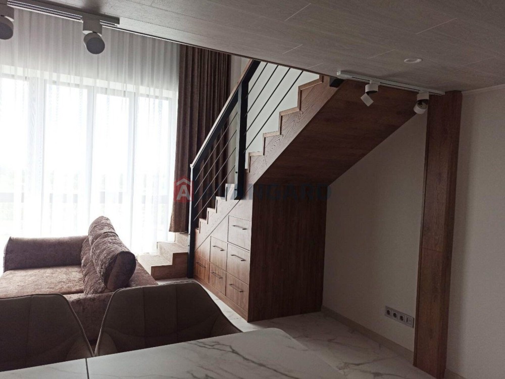 На 1-му рівні знаходяться простора кухня-студія з усією необхідною технікою, вітальня з каміном, санвузол з душовою кабіною. На 2-му рівні розташовані спальня, велика гардеробна, санвузол.