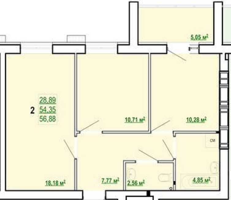 • Загальна площа 57 м2