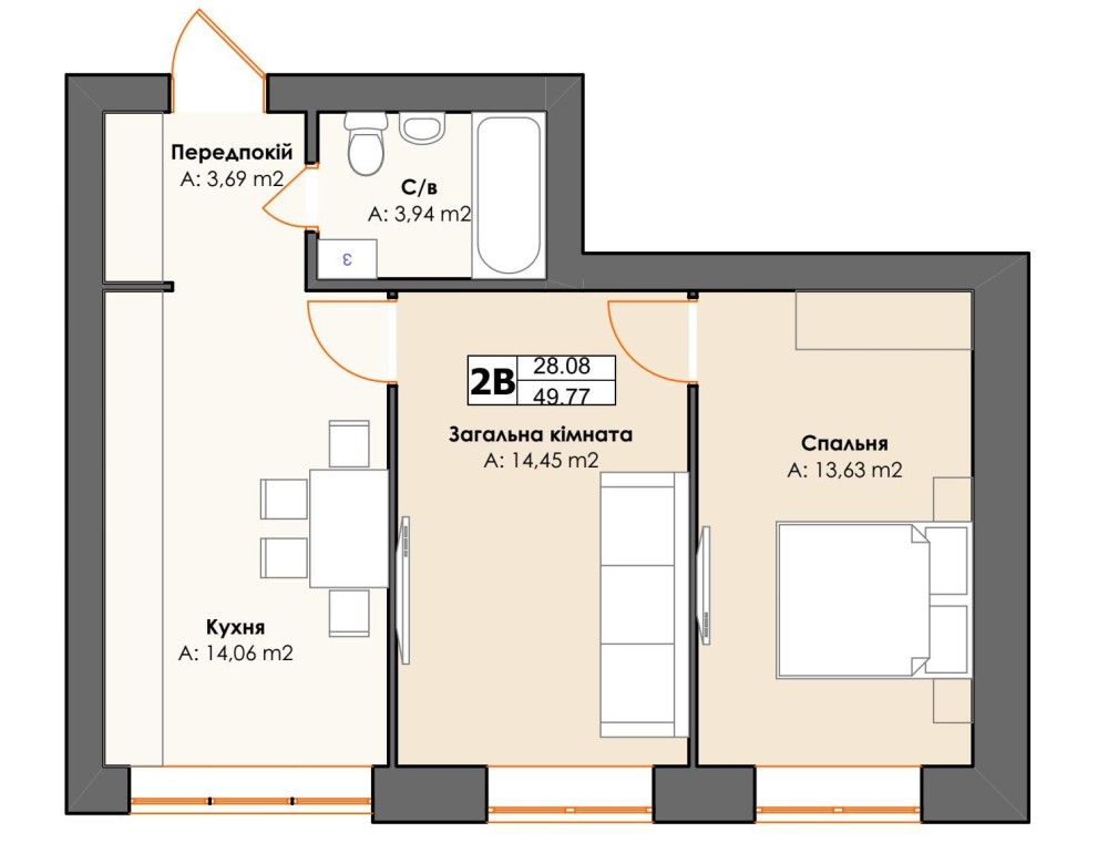 • Загальна площа 49.77 м2