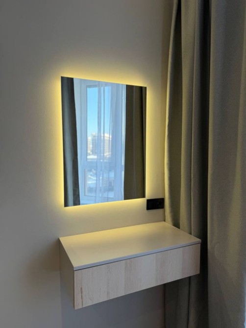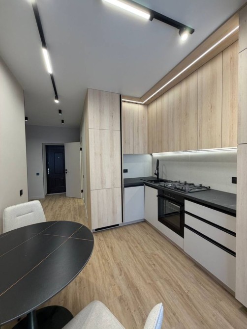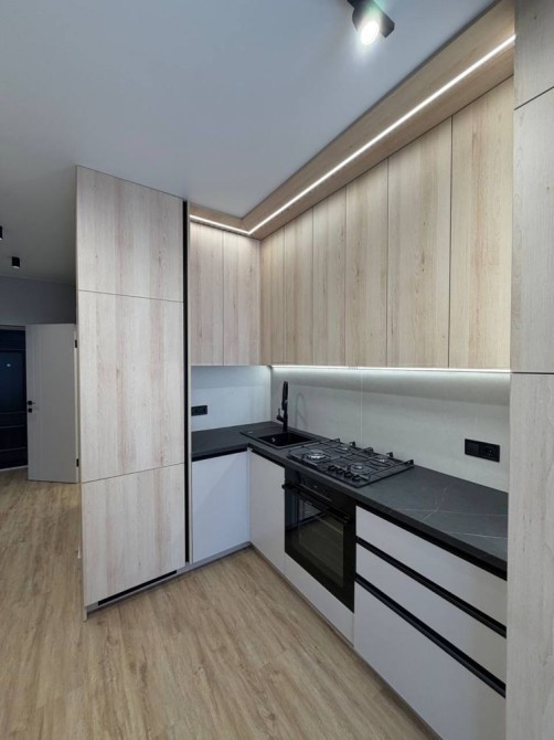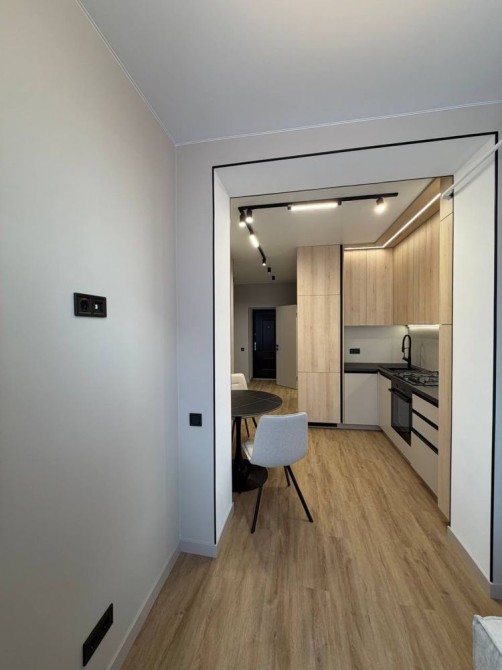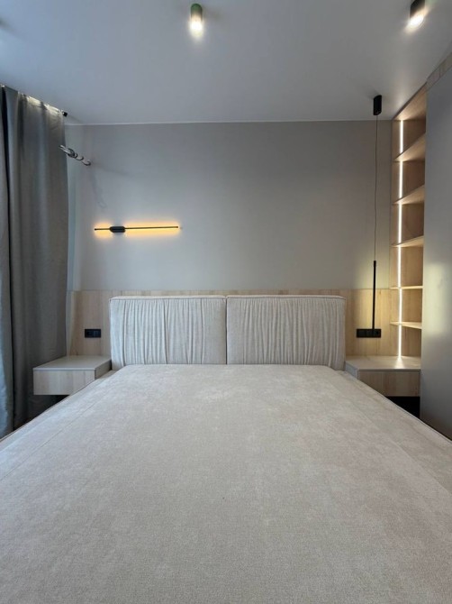 Квартира оформлена у світлих, теплих тонах, що створюють атмосферу затишку та простору. У квартирі є два дивана та окрема спальня, стильна кухня-студія та розкішний санвузол.