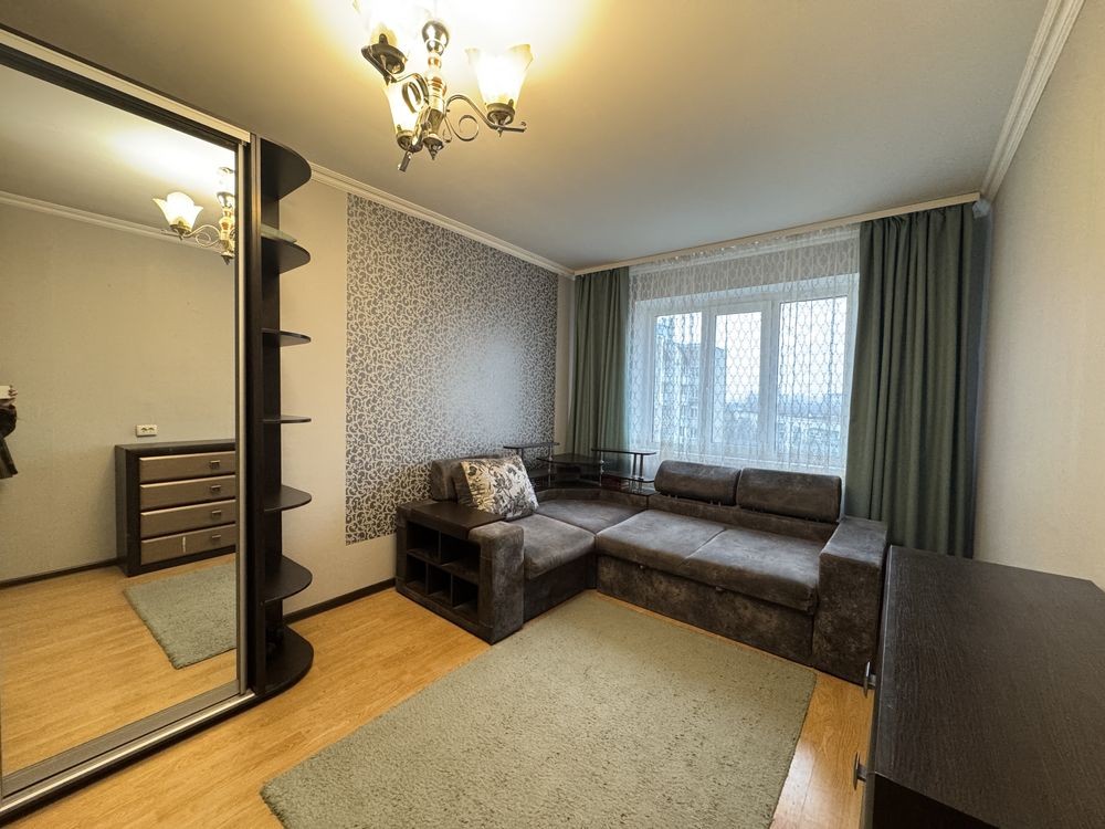 Продаж 1-к квартири вул. Кам'янська 128. м. Вирлиця 5 хв. Ремонт у світлих тонах, вікна підлоги, стелі 3 метри. Продаж з меблями та побутовою технікою. Гарний вид на Бажана проспект і озеро. Лічильник на тепло. Закрита територія. Поруч парк Партизанської Слави. 044 200 10 80