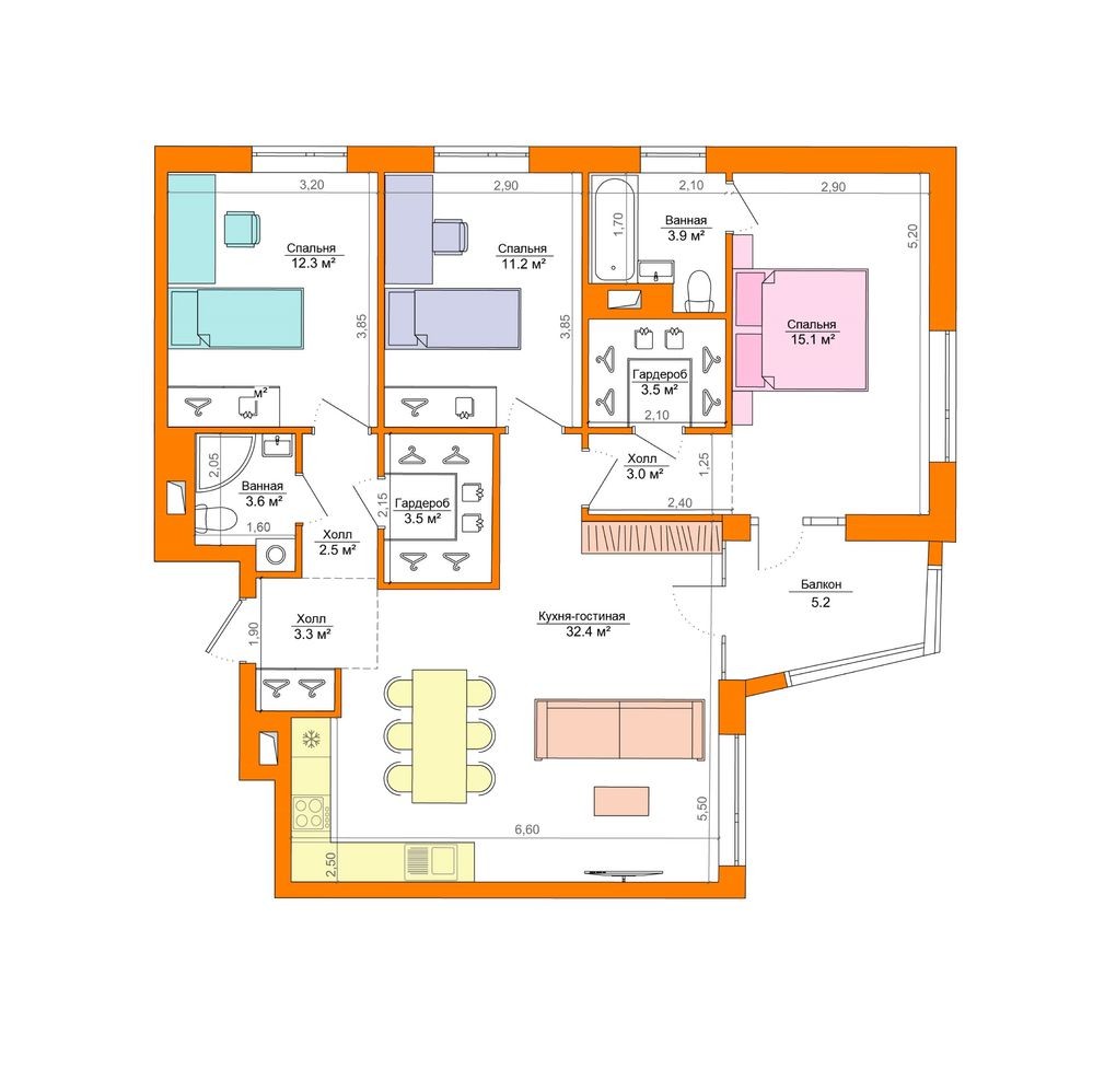 Загальна площа — 105,2 м²